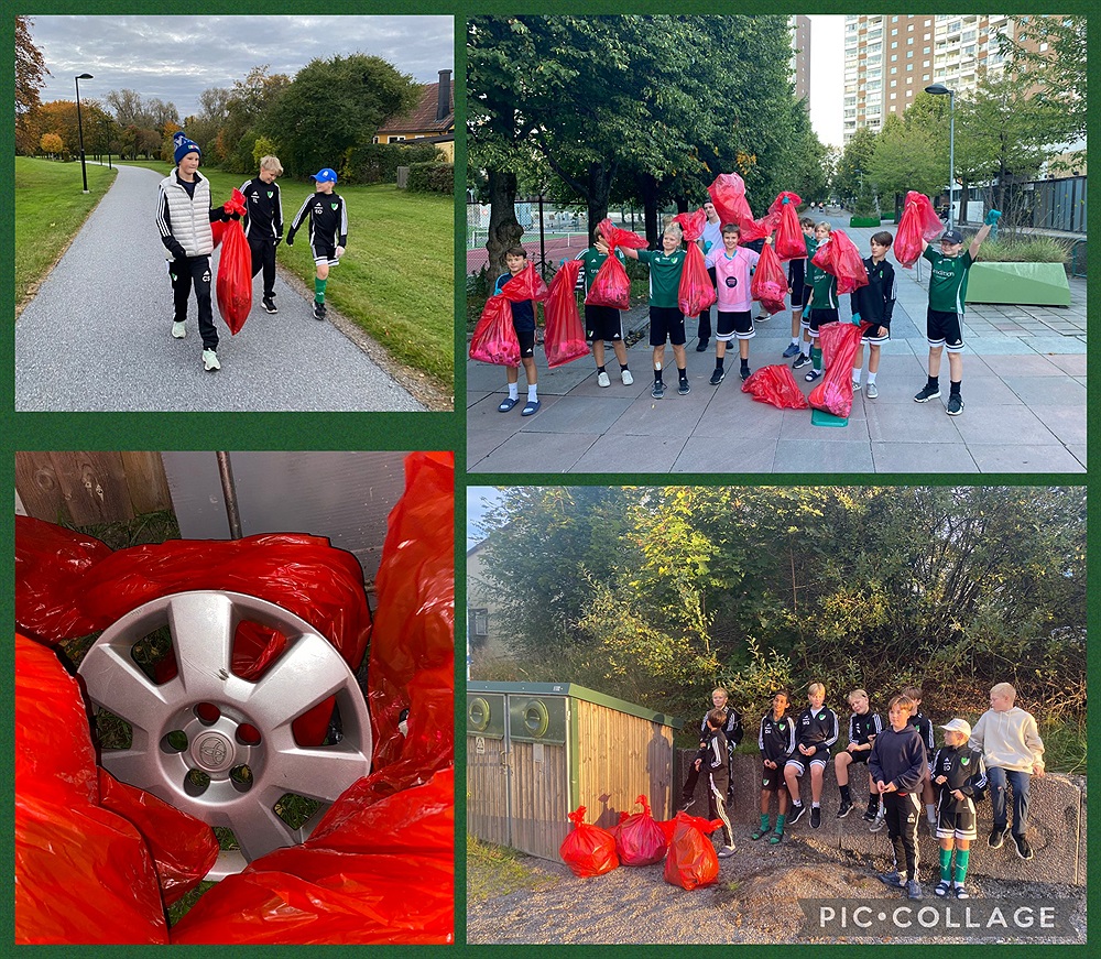 Under fyra eftermiddagar har våra grabbar samarbetat, slitit och städat undan skräp från Täbys parker, torg och fotbollsplaner - och vilka mängder vi fått ihop! Tror alla inblandade är fascinerade över hur mycket som slängs i naturen och på våra gator och även över VAD som slängs! Allt från bildäck, fäljar, kläder, golfbollar, sparkcyklar, mobilskal, och pakethållare till mängder av flaskor, snabbmatsförpackningar, fimpar och prillor!